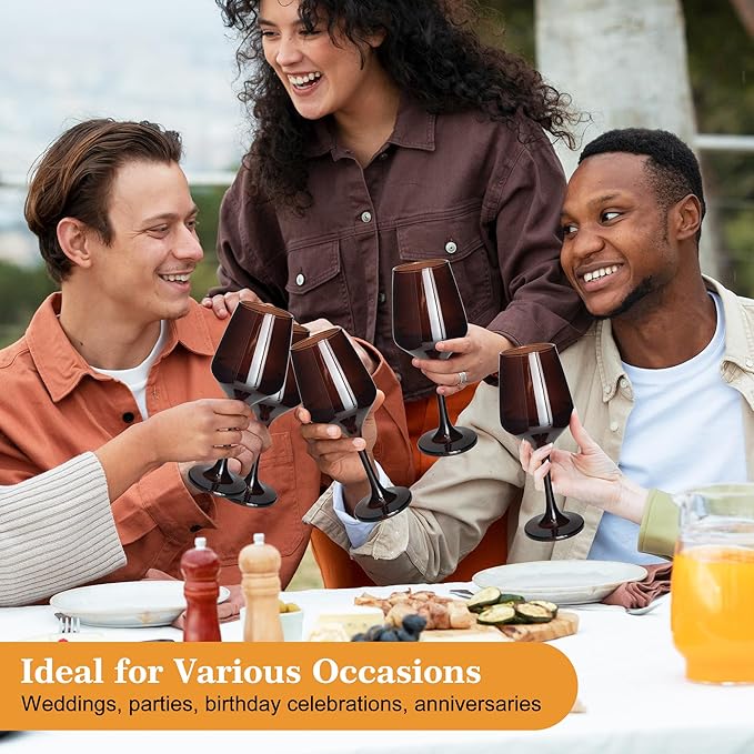 - 【【Elegant Brown Wine Glasses 】Glazvia Brown wine glasses set of 6 comes in a variety of stunning shades including 6 Brown wine glasses. These wine glasses are perfect for any occasion, whether it's a casual family gathering, a formal dinner, or a fun wine tasting event, the beautiful Brown glassware add a pop of color to your table setting and create an elegant atmosphere.