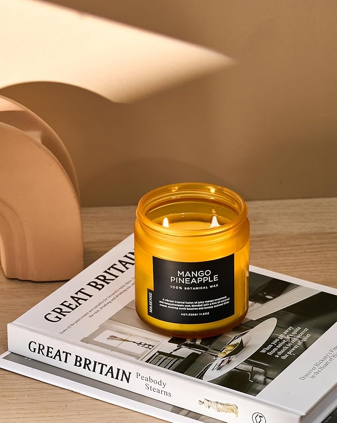M&SENSE Mango Pineapple Tropical Scented Candle - 11.6oz Natural Soy Wax Non Toxic 70-Hour Burn 2-Wick Fruit Scent for Home, Housewarming Gifts - Aromatherapy Candle for Women, Men & Family Friends
