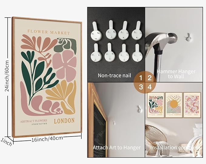 - Charming Boho Floral Design: Elevate your decor with the Tinonedraw Boho Flower Market Framed Canvas Wall Art Set, featuring vibrant pink and beige hues along with delicate butterfly motifs. This artwork brings a lively and whimsical touch to any room, perfect for flower lovers.