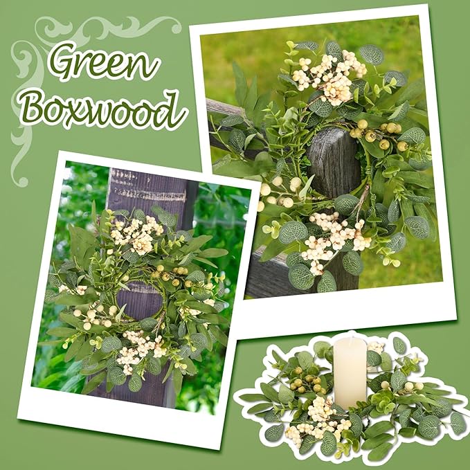 - Package Includes: you will receive 6 pieces of green eucalyptus leaves candle rings wreaths. These berry candle wreaths have an overall diameter of 7.87 inches with an inner diameter of 3.15 inches, suitable for most pillar candles, jar candles, candlesticks, lanterns, candle holders, and other table displays enough quantity can meet your daily needs and various decorative needs, notes: the package does not include candle cups and candles, please pay attention to the product size before purchasi