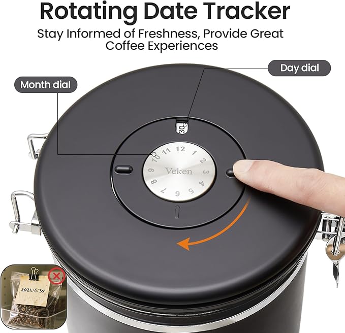 - 【Reason to Choose Veken】Crafted from durable 304 stainless steel, Veken coffee canisters put forth our strength to preserve more freshness of each coffee bean. Every detail is designed with your coffee experience in mind. Choose Veken for reliable, elegant coffee storage that enhances your daily coffee experience.