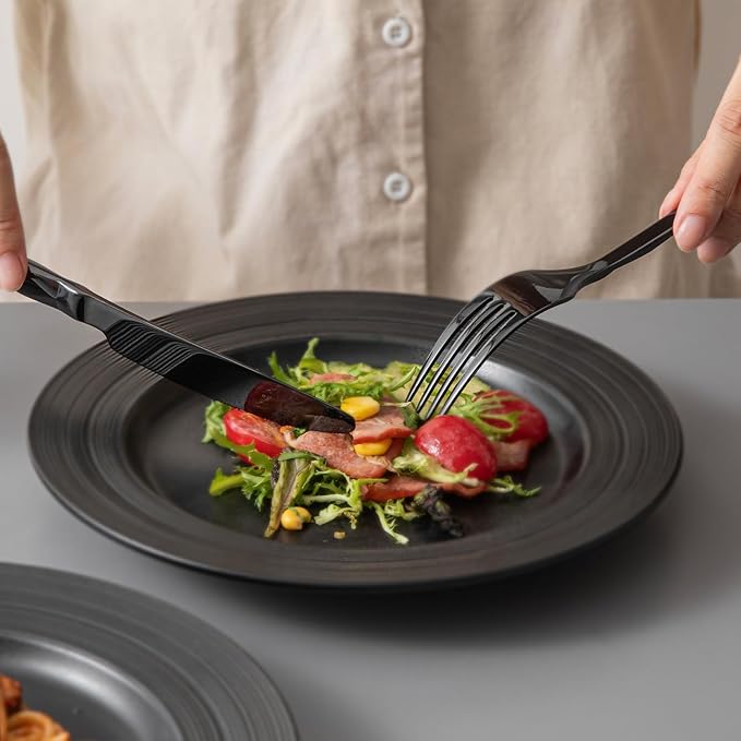 KINGSTONE Black Silverware Set, Luxury 40 Piece Flatware Set for, 18/10 Stainless Steel Cutlery Set with Diamond Cut Pattern for Kitchen, Home, Wedding, Party, Mirror Polished and Dishwasher Safe
