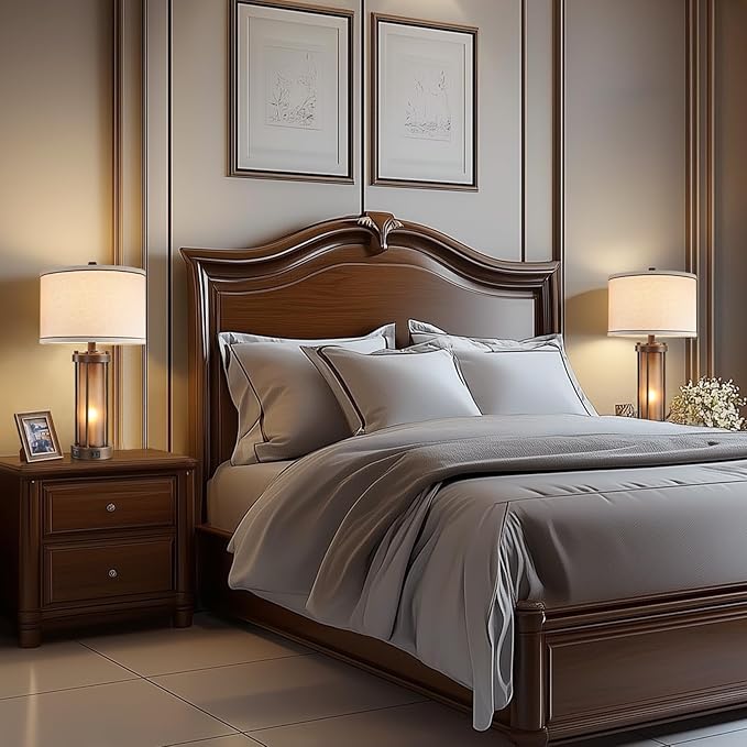 - Elegant Design: Our vintage table lamp features a brown metal base with a frosted amber glass night light, a subtle blend of rustic and classic charm, topped with a thick linen shade that softens the light and thoughtfully protects you and your family's eyesight. It blends into any décor, whether it's farmhouse, rustic, industrial or Scandinavian vintage.