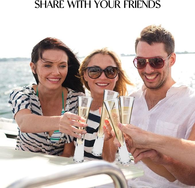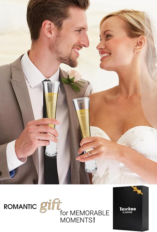 - 【Modern & Exquisite Toasting Fluts】Yaschmo champagne flutes feature a sleek, elongated silhouette that captures the essence of contemporary artistry. Designed with a refined small 5oz capacity, these glasses expertly channel bubbles from the base to the brim,intensifying aromas and enhancing the champagne’s effervescence. Whether you’re tasting vintage champagne, crisp Prosecco, or sparkling wine, the flutes’ graceful form and durable construction deliver a luxurious tasting experience.