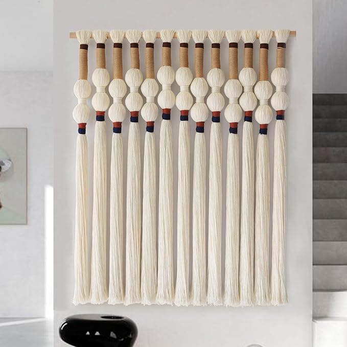 - Mounting:Macrame decor piece arrives with two premium mounting fixtures, making installation a breeze. Hidden brackets on the back provide secure, discreet hanging—keeping the focus on the art itself while concealing all hardware.