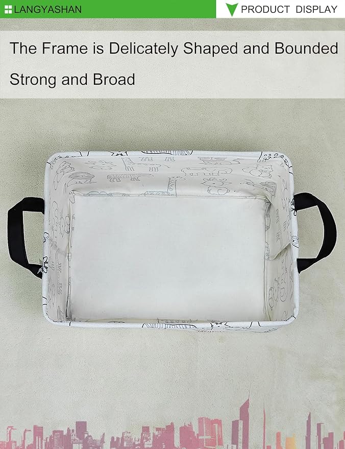 LANGYASHAN Rectangular Storage Bin Collapse Canvas Fabric Cartoon Storage Basket with Handles for Organizing Home Kitchen Boys and Girls Toys Office Closet Shelf Baskets (Rec Simplified Zoo)
