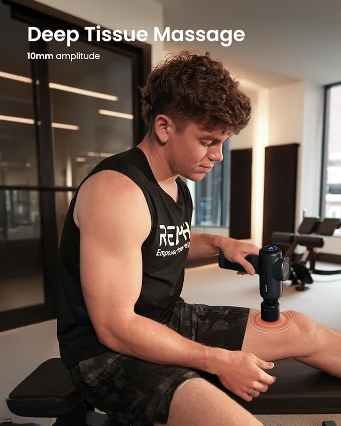 - 5 Speed Levels & LED Display: The LED display keeps you informed of 5 speed levels, and battery percentage. Plus, a 10-minute auto-off function prevents overuse, ensuring you can use the massage gun with peace of mind