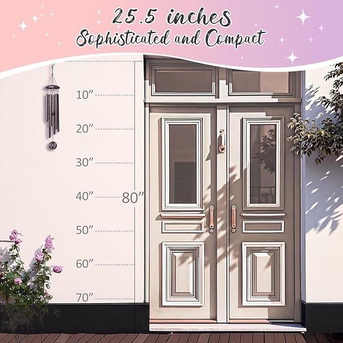 - High-quality Craftsmanship:25-inch classic wind chime with 6 anodized aluminum tubes and UV-resistant ropes,Each tube are wrapped and protected. Waterproof and built to withstand outside all weather conditions.