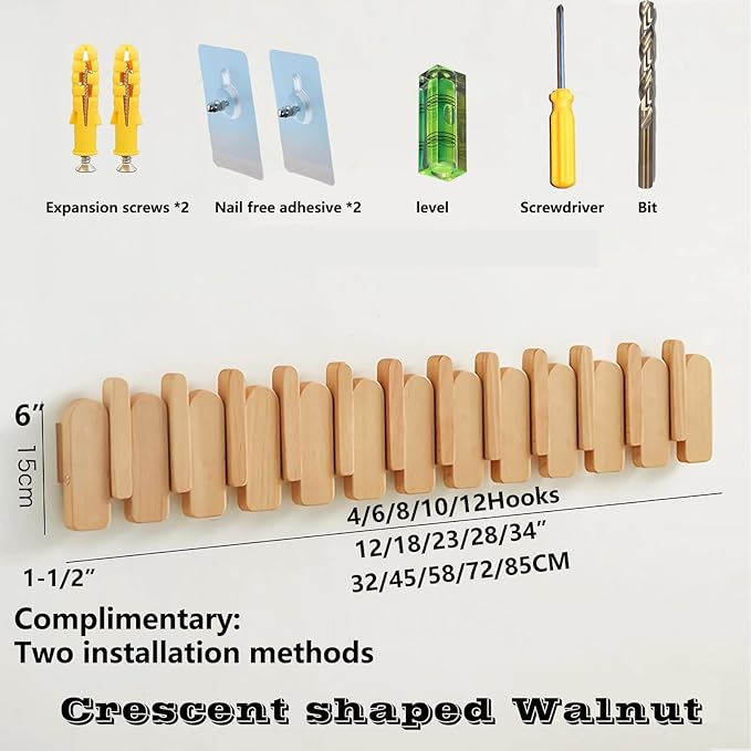 - Easy to Install: This wall coat rack with hooks can be mounted on any walls easily, the package includes 1pcs long wall coat hanger with 8 hooks, screws, plastic screw anchor, expansion rubber sleeve, drill bits for easy installation in the wall