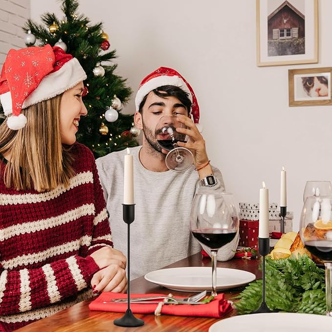 - ✅ Elegant 6-Piece Set: Set of 6 black taper candle holders made from durable matte metal, designed to hold standard taper candles. Perfect for adding a modern, elegant touch to dining tables, mantels, coffee tables, weddings, dinner parties, or home decor settings. This black candle holders set is suitable for candle sticks and taper candles, each one can fit 3/4 inch and 7/8 inch small candles as well as LED cone candles to match your dining table decor.