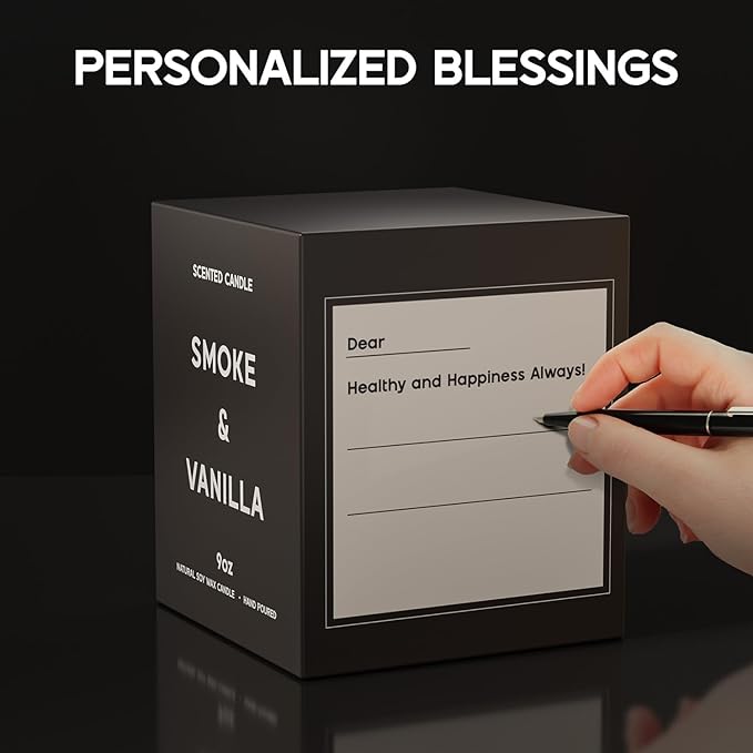 Smoke & Vanilla Candle, 9oz Scented Candle for Men, Scented Candles for Home, Gifts for Men, Personalized Blessing Minimalist Men's Gifts