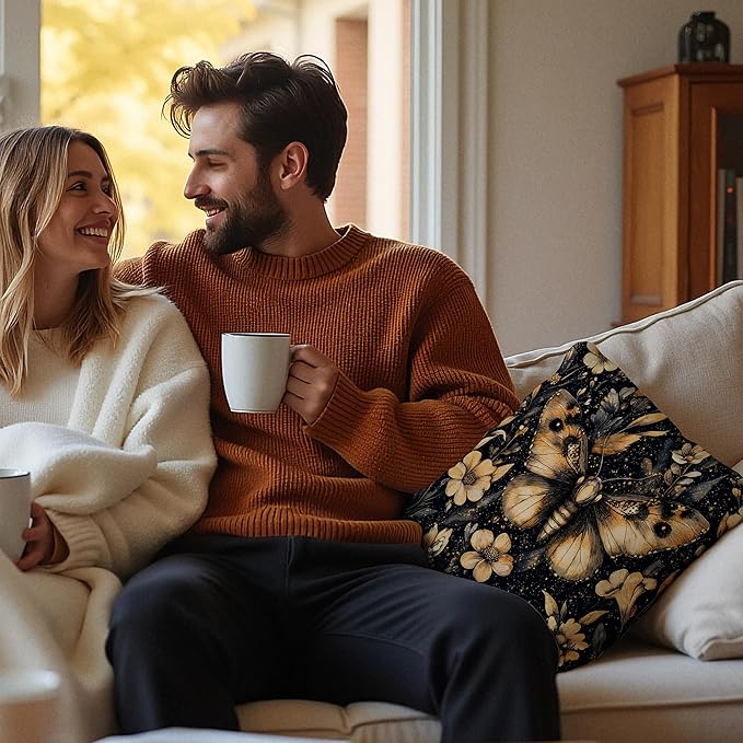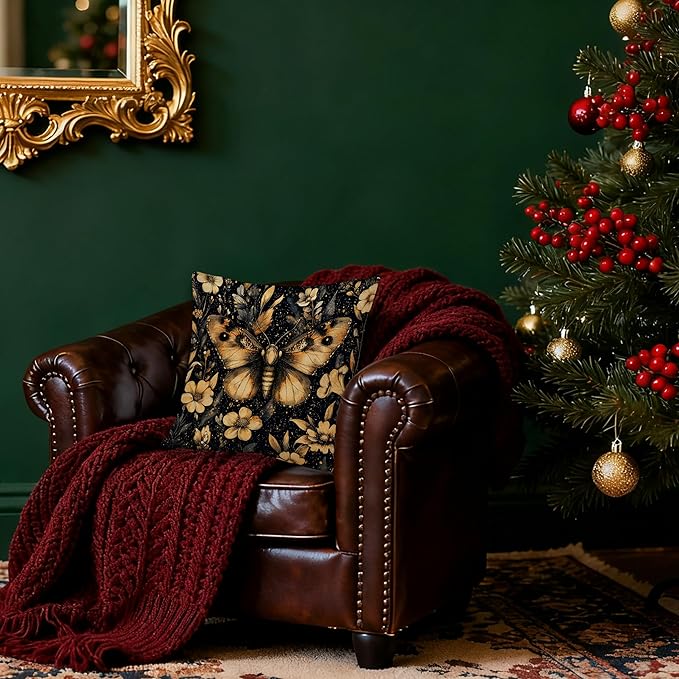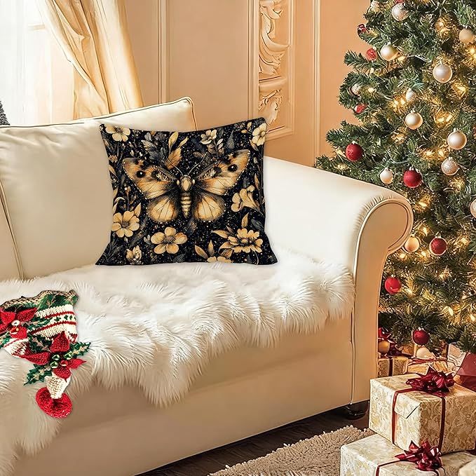 William Morris Inspired Floral Moth Pillow Covers 18x18, Dark Academia Cottagecore Botanical Floral Butterfly Decorative Throw Pillow Covers for Bedroom Living Room Home, Cottagecore Room Decor
