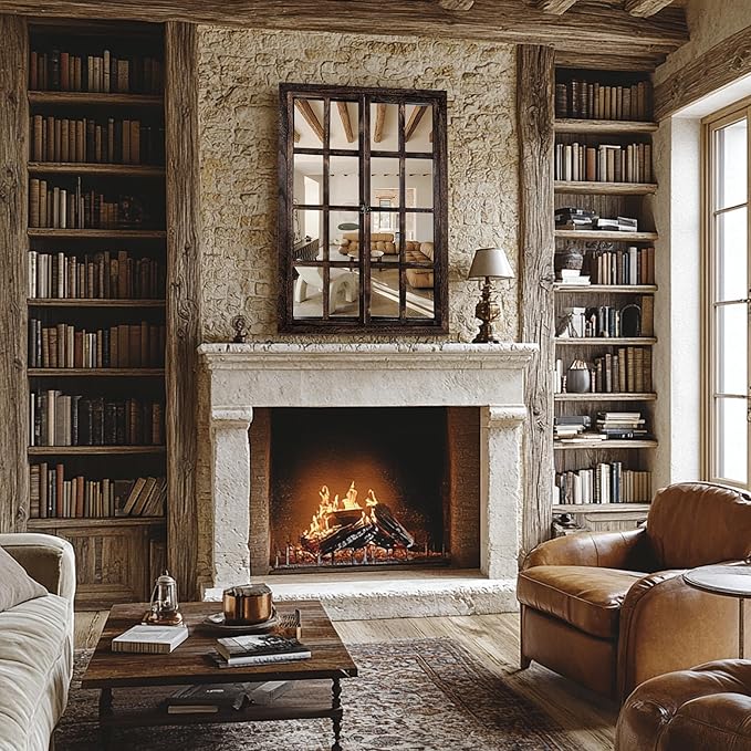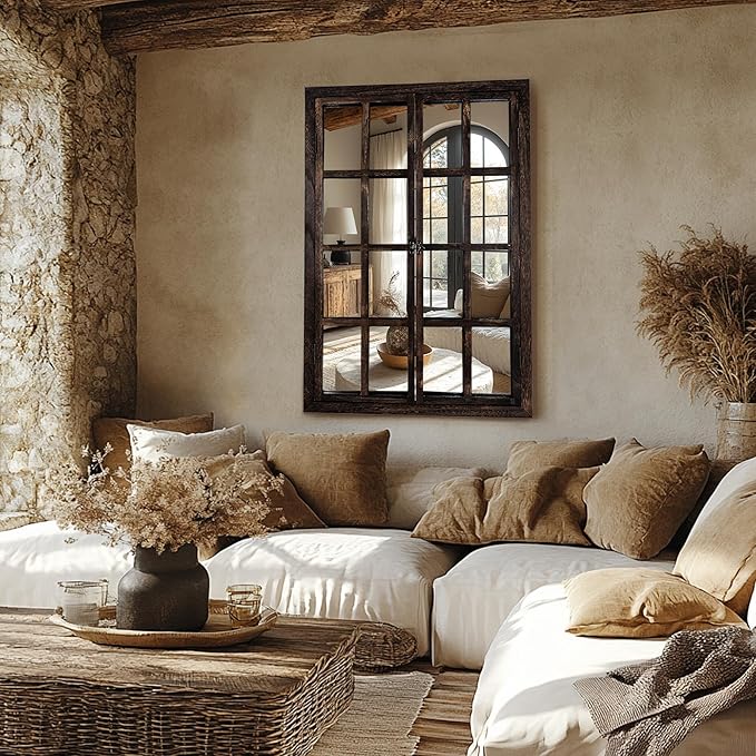 - 【Rustic Farmhouse Style】This wall mirror features a distressed wood windowpane design, adding a charming rustic farmhouse touch to any space. Perfect for those who love vintage-inspired or cottagecore aesthetics.