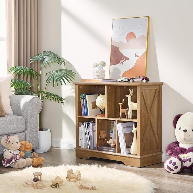 Farmhouse 5 Cube Bookshelf, Storage Organizer Bookcase, Kids Toy Storage Cabinet, Small Bookshelves Storage Organizer Shelf, Wood Display Cabinet Book Shelves for Bedroom,Living Room,Natural Oak