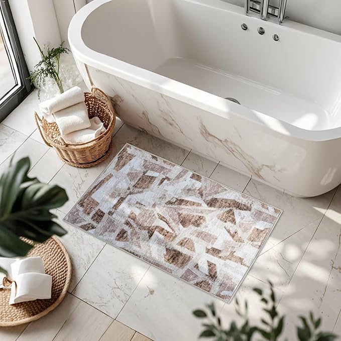 Modern Abstract Door Mat Indoor Entrance 2X3 Brown Rug Washable, Non-Slip Small Rugs for Entryway Bathroom Ultra-Thin, Throw Carpet for Kitchen Bedroom Nursery Kids Print Faux Wool
