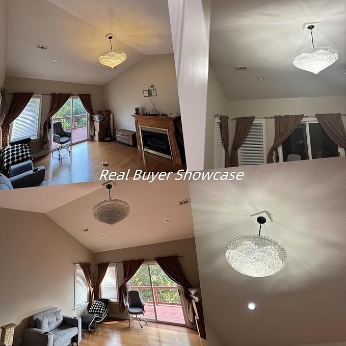 - 【Universal Modern Chandelier Installation】Round Crystal Chandelier with Flush-mount hardwired design fits 9-ft ceilings in bedrooms, kitchens, or dining rooms. Includes video guide for DIY setup in living rooms, entrances, or hotel suites. Compatible with dimmers for restaurants or cozy dining tables.