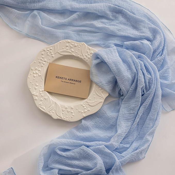 3pcs Light Blue Gauze Rustic Cheesecloth Table Runner 120 Inch 10 FT for Wedding Baby Shower Bridal Shower Birthday Engagement Garden Outdoor Party Long Sheer Boho Decorations