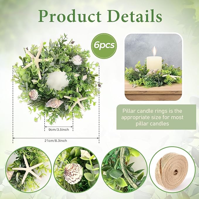 - Package Includes: you will receive 6 pieces of shell starfish swag wreath , which are sufficient to meet your wedding or party candle decoration and replacement needs; They can also create a natural and warm living atmosphere to bring a good mood
