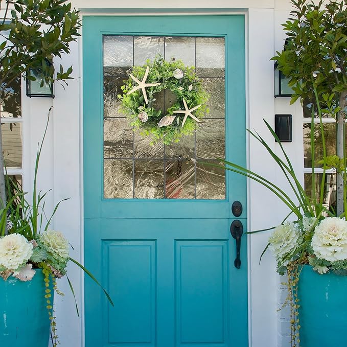- Shell Starfish Swag Wreath:This artificial pink floral wreaths is suitable for front door, wall, window, porch and farmhouse decor.It is also a nice gift for your family and friends.The shell starfish wreath will be a great addition to your kitchen cabine decor.