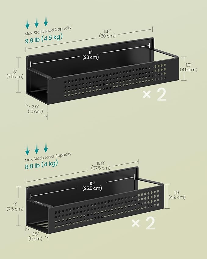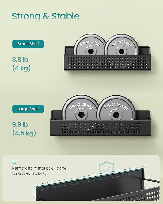 - Extra Strong Magnetic Hold: The powerful magnets (flux density: 700 Gauss) and the reinforced metal back panel give the spice rack secure support. The large shelf can support up to 9.9 lb, the small one up to 8.8 lb