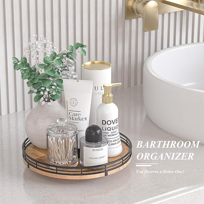- PREMIUM MATERIAL: Our farmhouse lazy Susan organizer is made of natural solid oak wood and strong metal, sturdy, durable and premium quality. This wooden turntable organizer is a game-changer for keeping your kitchen organized. The farmhouse oak finish gives it a rustic, charming look that will fit perfectly with your kitchen decor.