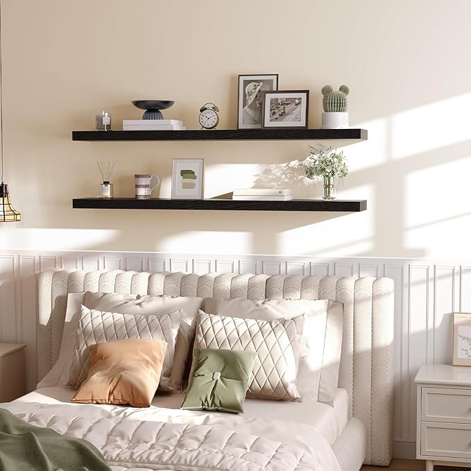 - Exquisite Wall Surface Decoration: Two classic and elegant black wooden shelves can be placed on each wall surface of all household rooms. This floating shelf for room wall is not only for its decoration effect, but also for this wall shelves high practicality. It is an ideal place to display your beloved photos, trophies and other delicate ecorations