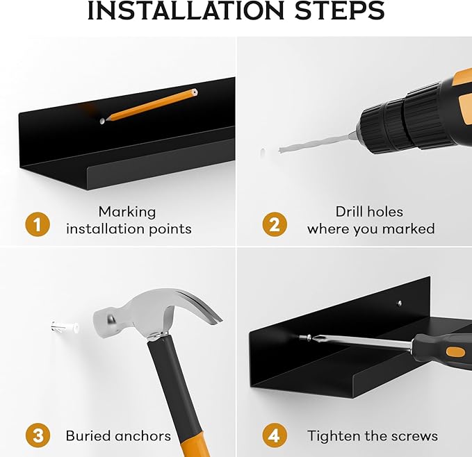 - 【Easy to Clean】Our wall shelves feature a smooth surface, making them extremely easy to clean. Simply wipe gently with a damp cloth to remove dirt, keeping them clean and shiny. Compared to wooden or plastic floating shelves, our wall shelves are more hygienic and healthier