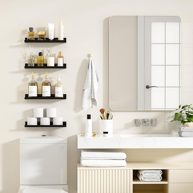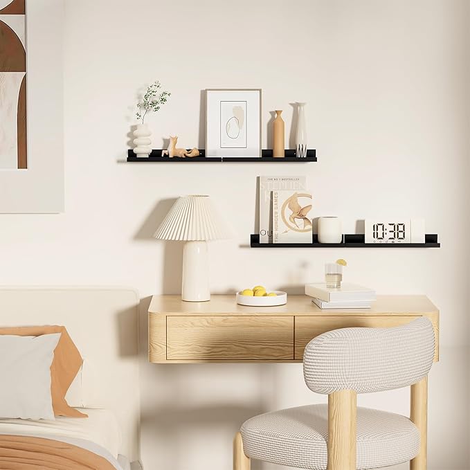 - 【Efficient Space Utilization】Our floating shelves for wall make the most of vertical space. You can hang various items on the wall, such as candles, perfumes, picture frames, handicrafts, and books. For small living spaces or areas with a lot of items, like kitchens, bathrooms, bedrooms, living rooms, and balconies, these shelves effectively increase the storage area