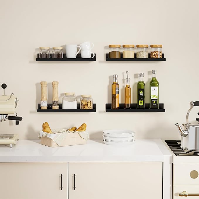 - 【Sturdy and Durable】Our black floating shelves are crafted from metal with high strength and hardness. They are capable of supporting heavy items and are not prone to deformation or damage. Whether you place kitchen spices or bathroom toiletries and cosmetics on them, they can hold the items steadily. Even after long - term use, there will be no issues like loosening or collapsing