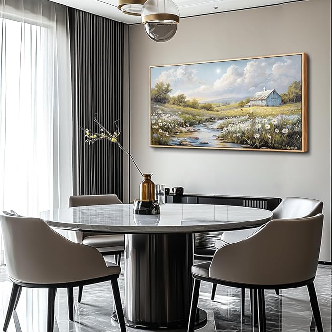 PHAOHUAXM Wood Framed Wall Art For Living Room Large Canvas Wall Decor For Bedroom Flower Watercolour Painting Office Decor Countryside Scenery Wall Picture Printing Artwork Home Decor 20x40 In