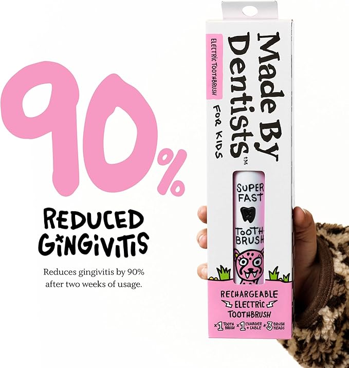 - Rechargeable Electric Toothbrush – Specially designed for kids with an ergonomic grip and small brush head for gentle, effective cleaning. Perfectly sized for little mouths and recommended for children and toddlers aged 2 and up.