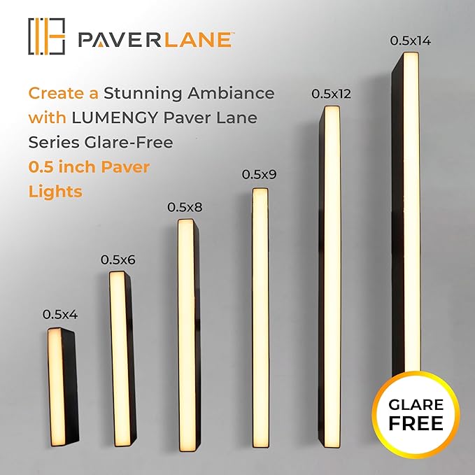 - Stunning Design - Lumengy Paver Lane series offers the longest size in our inventory, measuring 0.5x16 (0.55 x 15.75 inches). Its super slim design is perfect for creating thin linear highlights between pavers, along walls, and near planters, adding sophistication and elegance to your outdoor space. Experience a glare-free effect and enjoy the warm ambient light that ensures safety and comfort.