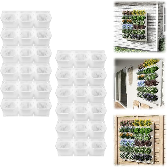 Self-Watering Vertical Wall Planter, 36 Pots Wall Mounted Garden for Indoor/Outdoor, Stackable Planter, Includes Panels, for Herbs, Flowers & Vegetables (White)