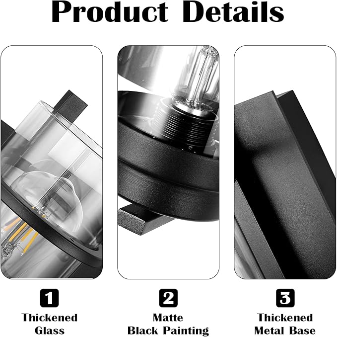 - Product Feature: Hardwired.Matte black bathroom light fixture with clear glass shade;Rustic Wall Sconce lighting is easy to install and can be mounted as either up light or downlight.