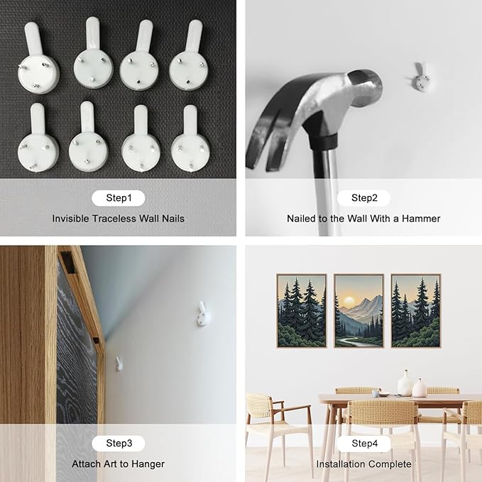 - 【Easy to Hang】This 16”x24” framed foggy forest canvas art is easy to install. Simply choose where you want to decorate, make sure it's level and aligned the way you want it, and staple it in place with non-marking nails. The entire process takes about 5 minutes.