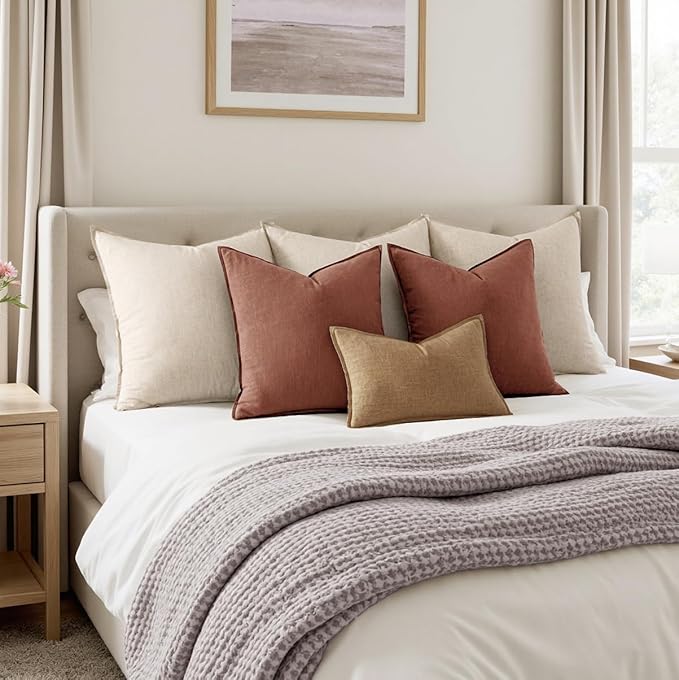 - 【Design with Flange Edges】 Boho pillow covers have flange at the edges. All fabric edges are sewn well to prevent fraying. The combination of the pure color and the classic linen edge makes the pillow covers more idyllic.