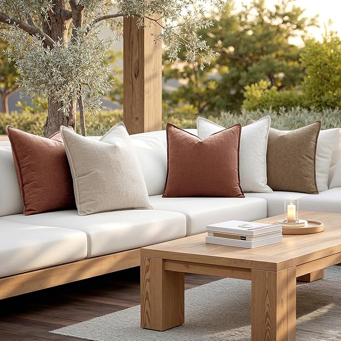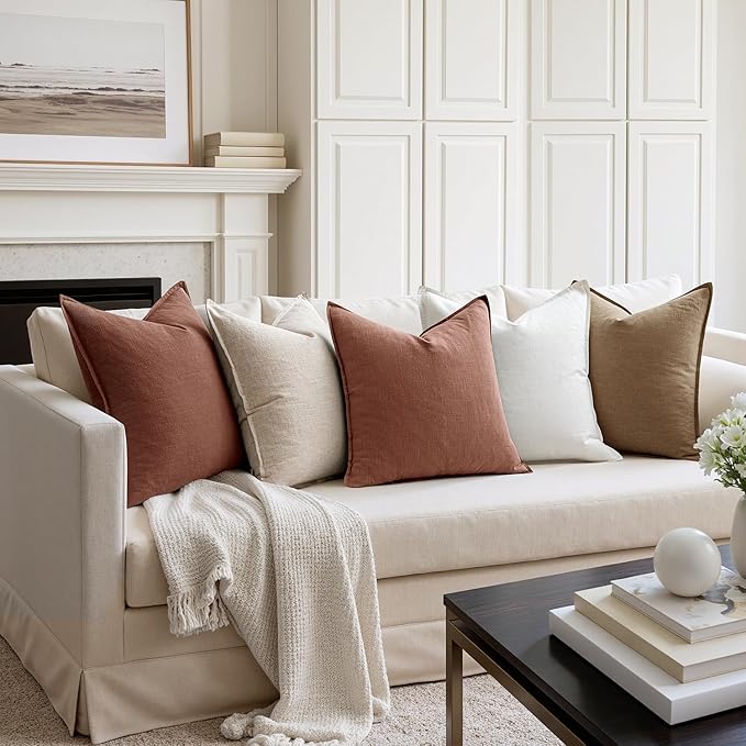 MIULEE Fall Decorative Linen Pillow Covers 20x20 Inch Rust Red Boho Farmhouse Neutral Couch Throw Pillows for Bed Pack of 2 Accent Modern Pillowcase Sofa Livingroom Home Decor