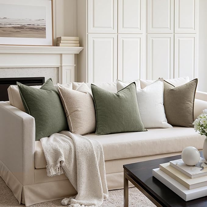 MIULEE Decorative Linen Pillow Covers 20x20 Inch Olive Green Boho Farmhouse Neutral Couch Throw Pillows for Bed Pack of 2 Accent Outdoor Pillowcase Modern Sofa Cushion Livingroom Home Decor