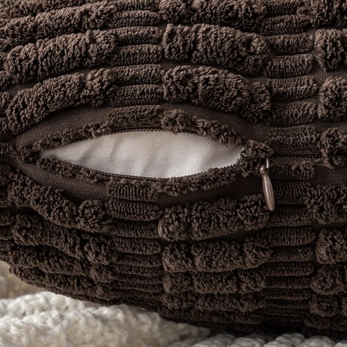 MIULEE Pack of 2 Corduroy Decorative Throw Pillow Covers 18x18 Inch Soft Boho Striped Pillow Covers Modern Farmhouse Home Decor for Sofa Living Room Couch Bed Dark Brown