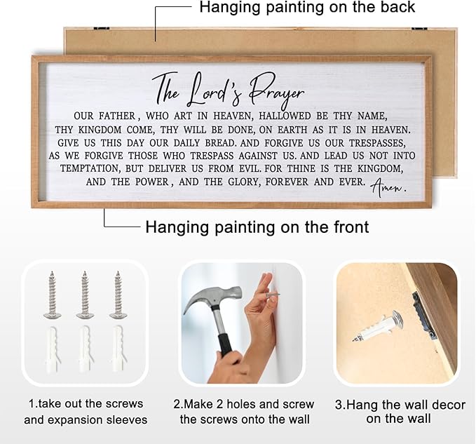 - 【Easy Installation】The inspirational our father prayer wall decor is equipped with plastic expansion and self-tapping screws, which will take you less than ten minutes to install it on the wall.