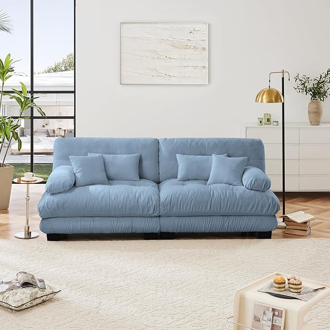 Modular Sectional Sofa, Comfy Cloud Couch Oversized Loveseat, Sectional Couches for Living Room, Modern Chenille Couch for Bedroom, Sleeper Deep Seat Sofa with Throw Pillows, Blue