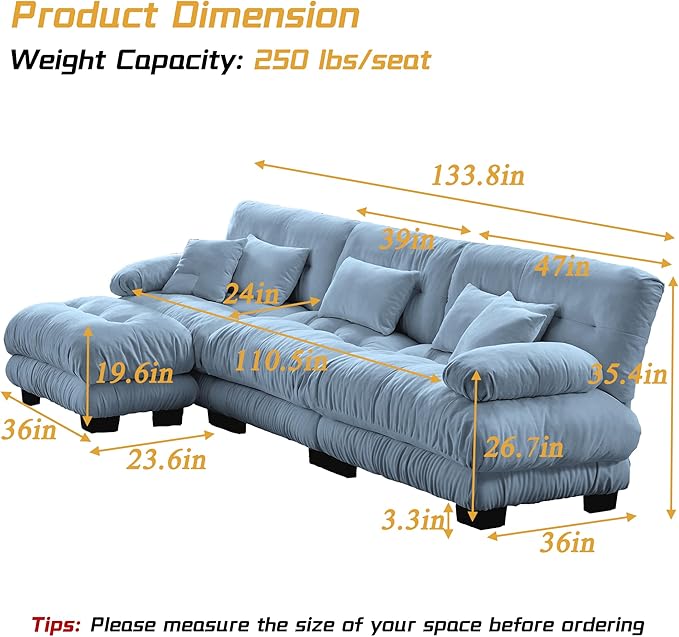 - 【Throw Pillow Included】Each seat of the deep seat sectional sofa is equipped with a matching pillow, providing a cohesive and stylish look while ensuring every moment spent on it is comfortable and supported