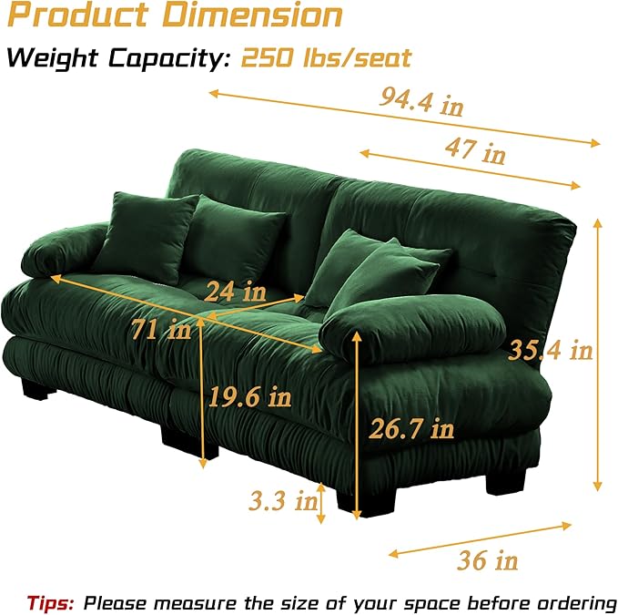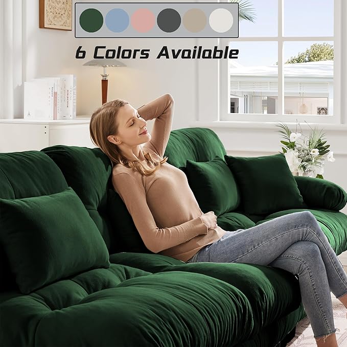 Modular Sectional Sofa, Comfy Cloud Couch Oversized Loveseat, Sectional Couches for Living Room, Modern Chenille Couch for Bedroom, Sleeper Deep Seat Sofa with Throw Pillows, Green