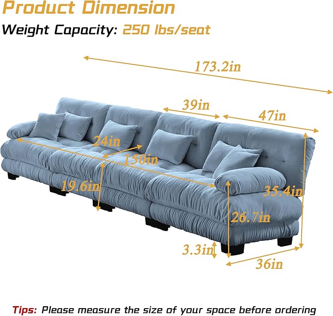 - Seat Depth : 47 inches
