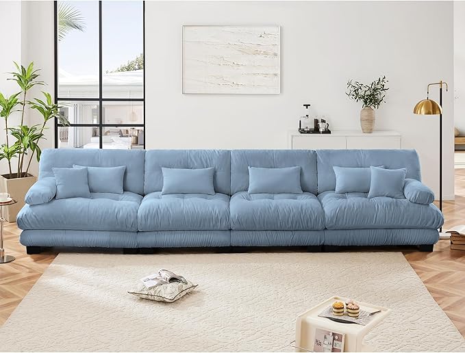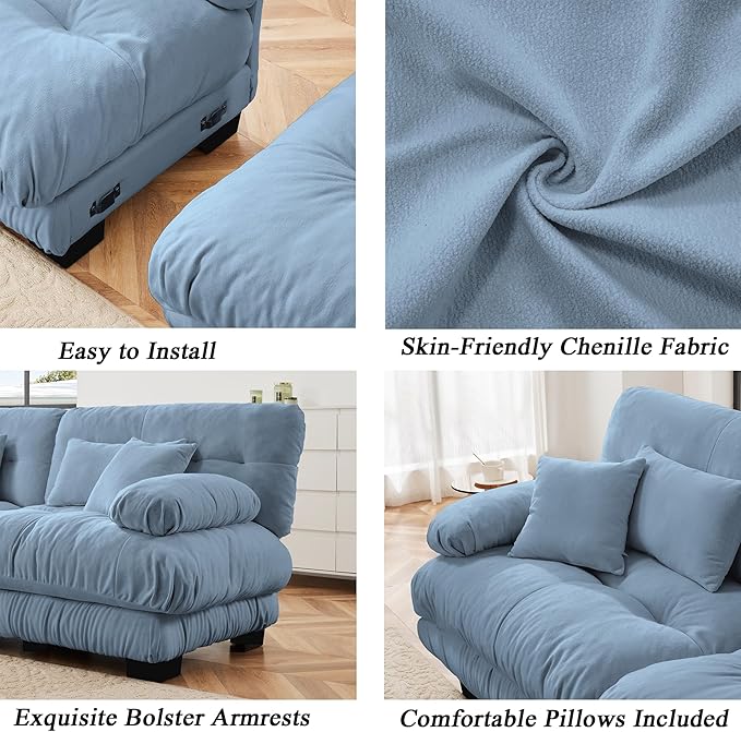 Modular Sectional Sofa, Comfy Cloud Couch 4 Seater Couch, Sectional Couches for Living Room, Modern Chenille Oversized Couches for Bedroom, Sleeper Deep Seat Sofa with Throw Pillows, Blue