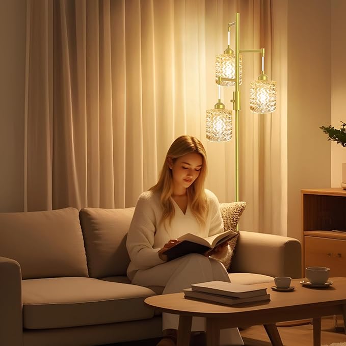 - Ready-to-Use Convenience: This gold crystal floor lamp comes with 3 matching E26 bulbs—no extra purchase needed. Simply unbox, install, and start using it right away. It saves you the hassle of choosing bulbs, so you can enjoy the beautiful glow of this floor lamp sooner