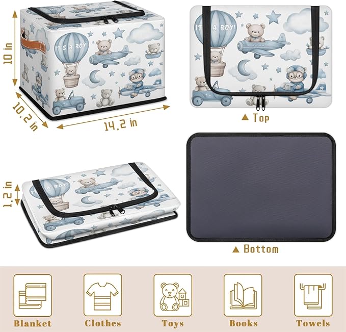 - Storage Box Size:14.”L×10.2”W×10.4”H inches.Save on space when not in use and fold flat for easy storage, Perfect for baby shower gifts, toys, books, clothes, games, baby doll accessories, or match-box cars