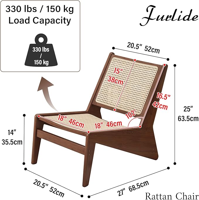 - Durable Construction: Crafted from solid wood and premium rattan, this accent chair ensures longevity while maintaining a lightweight feel, suitable for easy rearrangement in your home. It supports up to 330 lbs / 150 kg, providing reliable strength for daily use.