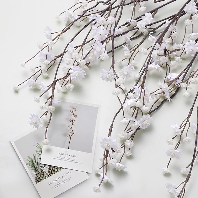 - Set of 10 Branches: You’ll receive 10 faux branches in total—perfect for filling out larger arrangements or spreading across different rooms; Each stem offers plenty of tiny white baby breath to create a full and airy look in any space