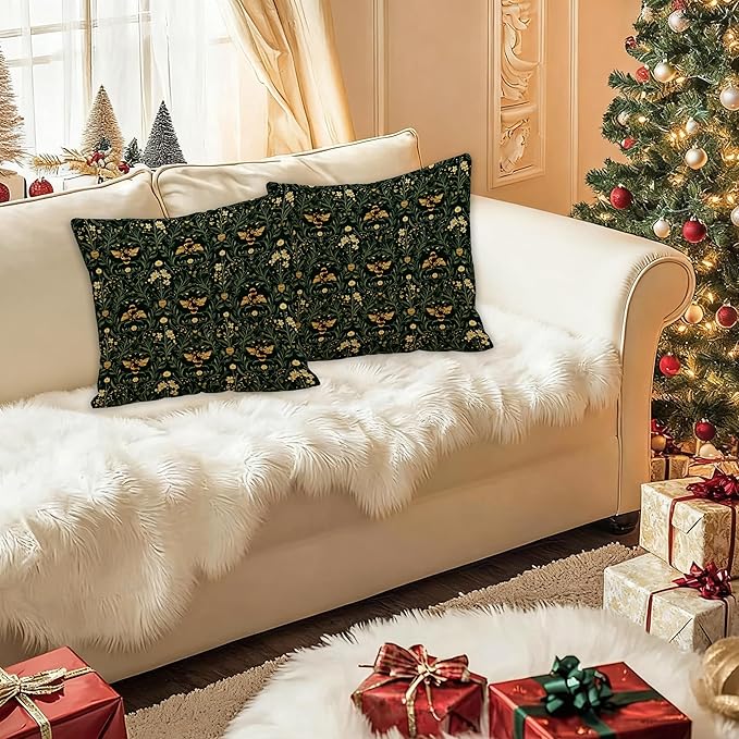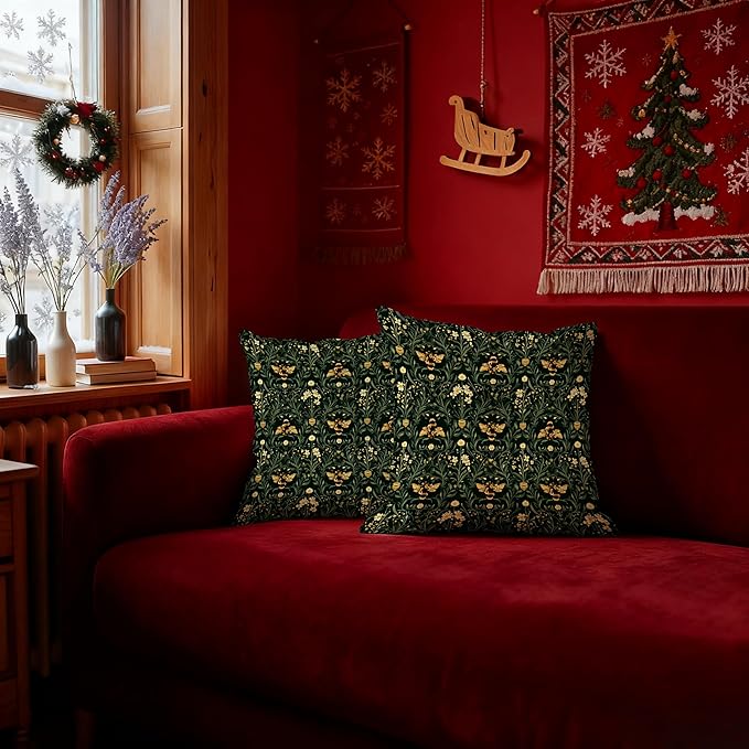 William Morris Inspire Floral Bee Pillow Covers 18x18 Set of 2, Dark Academia Art Nouveau Cottagecore Flower Botanical Bumblebee Decorative Throw Pillow Covers for Home Bedroom Living Room